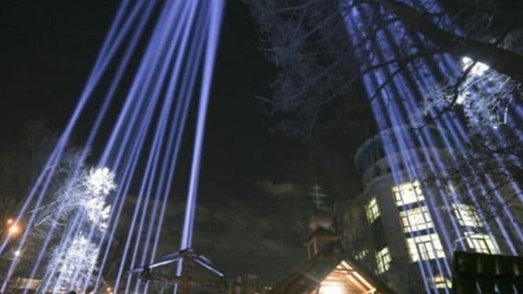 Сегодня, 20 февраля, в центре Киева на Аллее Героев Небесной сотни, одновременно из трех точек зажгли сотню "Лучей достоинства", символизирующих души погибших Героев Небесной сотни.