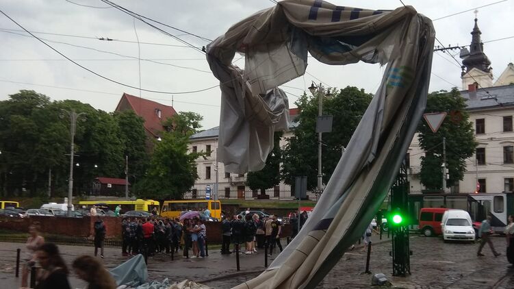 Из-за бури с ливнем и шквальным ветром, которые обрушились на Львов, в городе временно остановили электротранспорт.