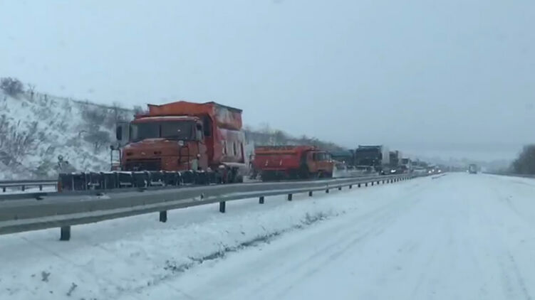 В Одесской области на дорогах М-15 Одесса - Рени (на Бухарест) и М-16 Одесса - Кучурган (на Кишинев) полностью закрыто движение для автотранспортных средств всех категорий из-за обильного снегопада.